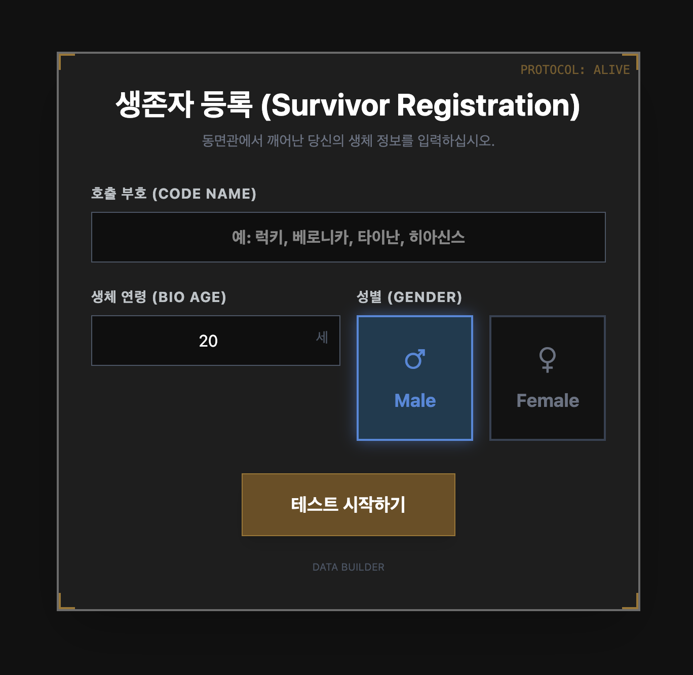 테스트에 임하는 사용자에게 '극단적인 선택을 하라'는 재미있는 압박감을 주고 싶었거든요. 림월드 게임 자체가 워낙 극단적인 상황들이 많으니까, 테스트도 그래야 재미있을 것 같았습니다.